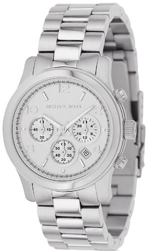 The Michael Kors Silver Runway Watch offers a bold way to get a sporty. Its stainless steel bracelet-style band with locking clasp is broad enough to hold the oversized stainless case firmly to your wrist. The silver dial provides a contemporary background for the three chronographs, which track minutes, seconds, and 24-hour information. A subtle window at the four o'clock position presents the date. Additionally, the Michael Kors has luminous stick markers and hands for excellent low-light visibility. Water-resistance to 330 feet (100 meters), a durable mineral crystal, and quartz movement mean this watch can handle wear and tear."See More Feature and Reviews"